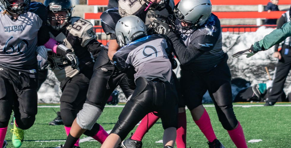 The 2019 Novice season will see the League change from Tackle Football to Extreme Flag. Football Canada has implemented a rule change that will not allow players under the age of 9 to participate in tackle football. So the Novice league will make the change to Full Equipment Flag Football. It's got full blocking, stiff arms, and teaches the physical play that the players will require when they go up to the Atom level.